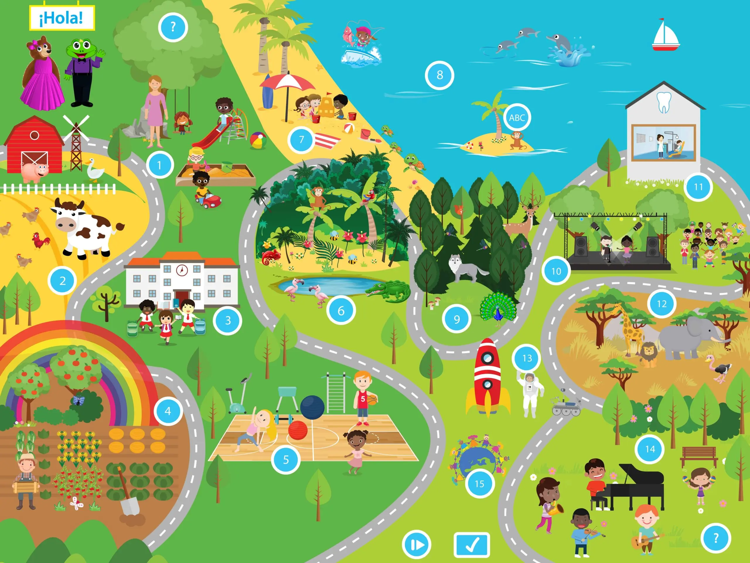 Our visually engaging Adventure Map strategically positions each of the 16 adventures so children can learn and practice vocabulary in a sequential or flexible manner according to your program’s instructional philosophy.
